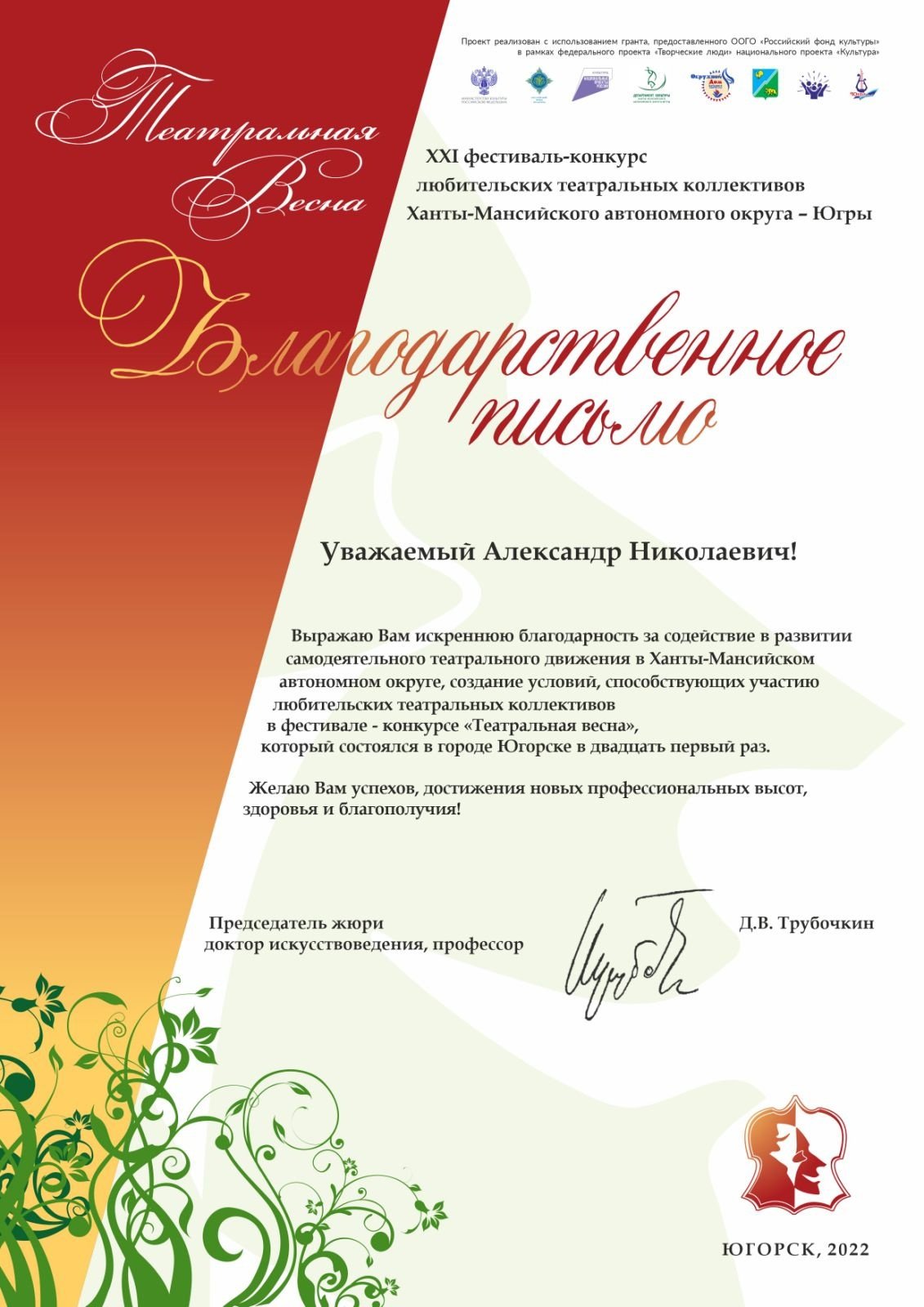 Напомним, фестиваль проходит в городе Югорске. И ежегодно объединяет детские, молодежные и взрослые любительские театральные коллективы со всей Югры. В этом году он состоялся с 5 по 9 октября на сцене культурного центра Югра-Презент.
