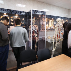 Затем участники отправились на экскурсию по корпусам института. Особый интерес вызвал Симуляционно-тренинговый аккредитационный центр, где студенты отрабатывают практические навыки перед допуском к работе с пациентами. Гостям показали, на каких тренажерах занимаются будущие неонатологи, врачи скорой помощи, терапевты, врачи общей практики и не только. Далее группа посетила кафедру морфологии и физиологии, где ознакомилась с экспонатами анатомического музея. Преподаватели продемонстрировали уникальную коллекцию анатомических образцов, используемую в образовательном процессе, и объяснили ее значение для подготовки медиков.