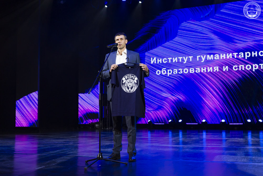 Поздравляя студентов, преподавателей и сотрудников, Владимир Родионов отметил, что на 23 направлениях подготовки динамично развивающегося Института гуманитарного образования и спорта, обучаются свыше тысячи студентов. ИГОиС стремится стать лидером по ряду приоритетных направлений развития, поддерживая высокую культуру образовательного процесса, развивая научный потенциал творческого коллектива. «В рамках развития науки в 2021 году проводилась работа над 5 грантами, общий объем финансирования составил свыше 12 миллионов. Преподаватели поддерживали публикационную активность на высоком уровне, написано свыше 400 публикаций, 30 из которых индексируемы в информационно-аналитических системах научного цитирования. В рамках развития образования полностью реализованы в онлайн-формате курсы повышения квалификации кафедрой педагогики, доля слушателей программ дополнительного профессионального образования достигла 50 %. Предполагается перевести в онлайн-формат ряд магистерских программ», – не без гордости сообщил Владимир Александрович.