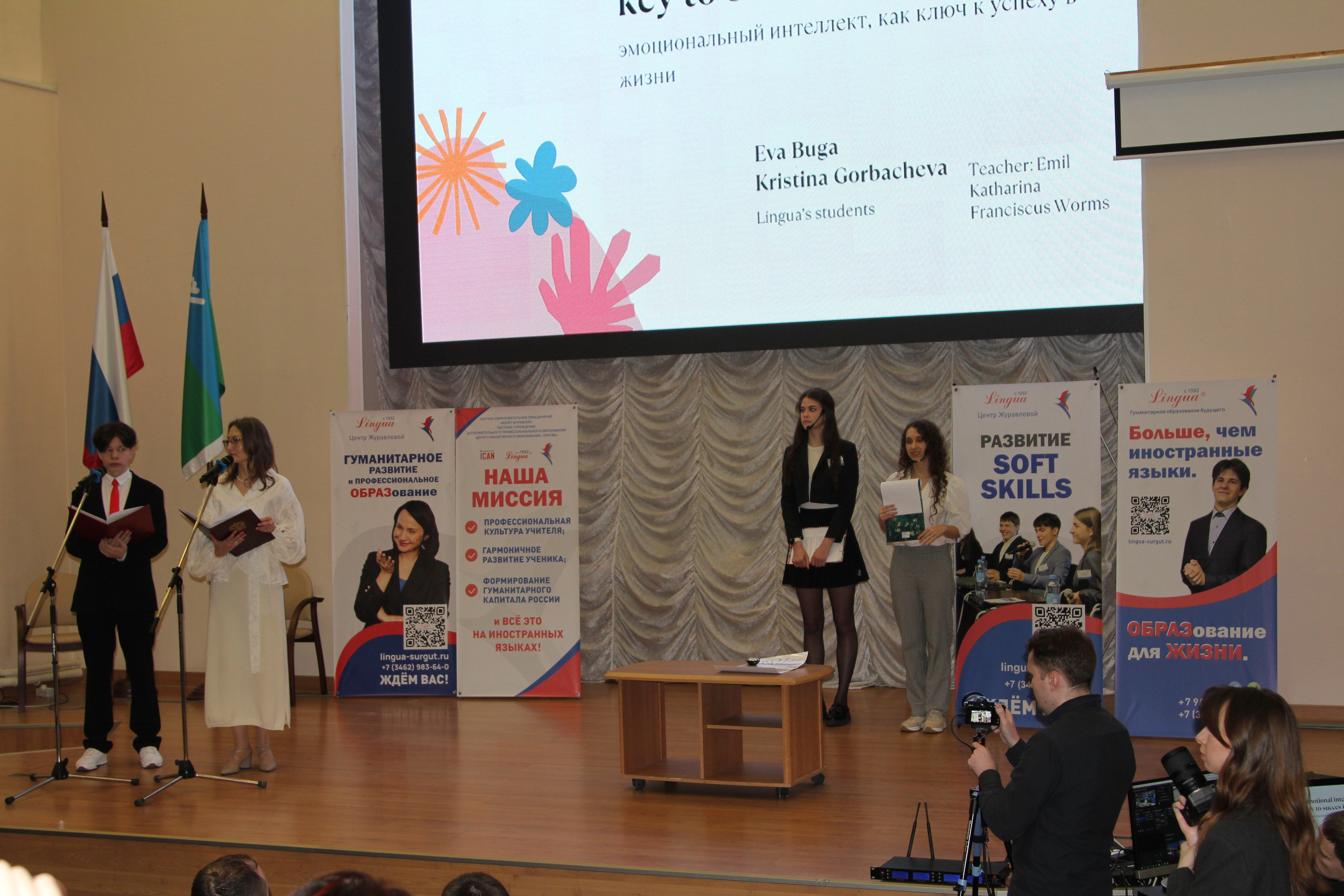 Благодарим Раису Журавлёву, генерального директора ЧУ ДПО ЦГО«Лингва», и Елену Полякову, заместителя генерального директора, канд. пед. наук ЧУ ДПО ЦГО «Лингва», за предоставленную возможность участия кафедры лингвистики и переводоведения ИГОиС СурГУ в организации Международной молодежной конференции-конкурса «Гуманитарное образование на иностранных языках в современном обществе».