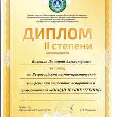 По итогам конференции был отмечен высокий уровень научных докладов участников от СурГУ. Студенты 4-го курса Института государства и права группы 102-31 Дмитрий Волошин и Антон Тимиреев были награждены дипломами II степени.