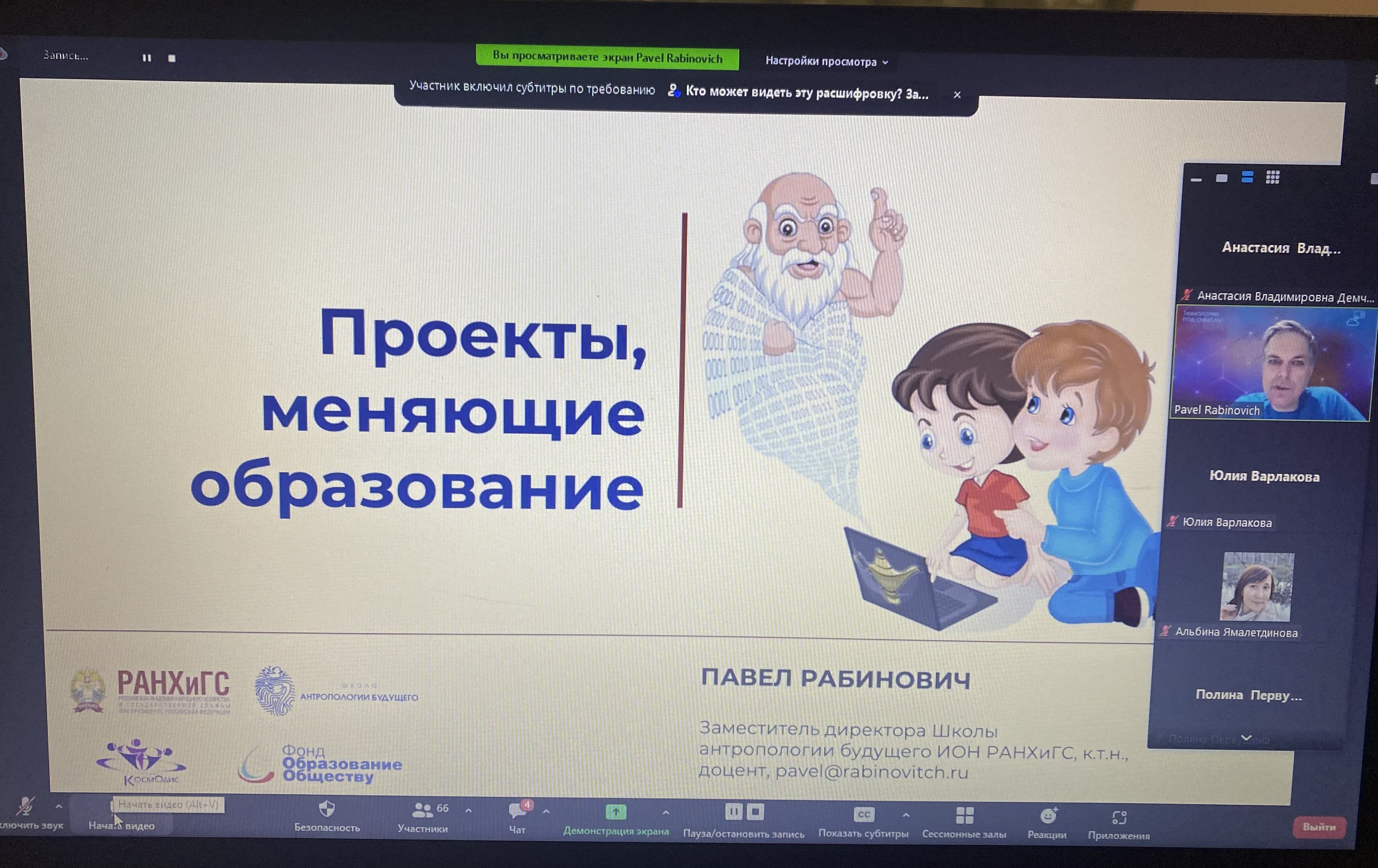 Приглашенным спикером и ведущим семинара был Павел Давидович Рабинович – директор центра проектной и цифровой трансформации образования ФГБОУ ВО «Российская академия народного хозяйства и государственной службы при Президенте Российской Федерации», лауреат премии Правительства Российской Федерации в области образования, участник комиссии Российской академии наук по популяризации науки, экспертного совета Международной гимназии Сколково.