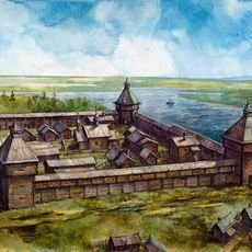«Острог был поставлен в 1593 году отрядом при воеводе Микифоре Траханиотове (руководитель отряда), князе Михайле Волконском (лицо от государя) и письменным голове Иване Змееве (делопроизводитель). В отряде с ними были 300 ратных людей (служилые люди, прибывшие на постоянное место жительства, занимались сбором ясака, обслуживанием крепостей и их строительством по всей Сибири, обороной и пр.). Фактически – это представители власти Московского государства в Сибири. И еще 150 человек с Перми, Соли Вычегоцкой, Вычегды и со всей страны – прибыли на год, только помочь с возведением острога, потом разъехались по домам».
