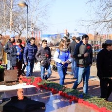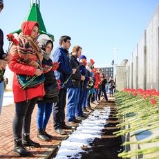 «1240 гвоздик было передано по цепи и возложено к Мемориалу Славы нашими студентами, преподавателями и жителями города. Стоишь в цепи, передаешь цветы и осознаешь, сколько сургутян погибло во времена Великой Отечественной войны. Просто кровь стынет в жилах! Вечная память всем павшим на полях сражений. Спасибо, за мирное небо над головой!»