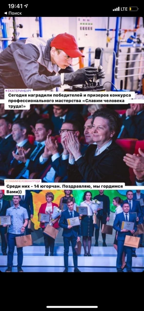 В официальном аккаунте главы региона Наталья Комарова опубликовала фото с надписью: «Сегодня наградили победителей и призеров конкурса профессионального мастерства «Славим человека труда!». Среди них – 14 югорчан. Поздравляю! Мы гордимся Вами)))».