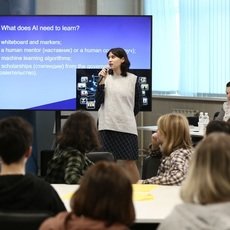 «Искусственный интеллект меняет мир вокруг нас» – такова была тема дискуссии, участвовать в которых могли все желающие студенты СурГУ. Традиционно мероприятие проходило на русском и английском языках. На обсуждение выносились вопросы не только о практике и истории, но и об этической стороне применения искусственного интеллекта. Участников разделили на команды, которым предлагалось ответить на ряд вопросов в формате тематических викторин на английском языке, решить несколько этически-философских дилемм, а также определить, какие из утверждений об ИИ являются фактом, а какие – выдумкой. Команды успешно и с энтузиазмом выполнили все задания!